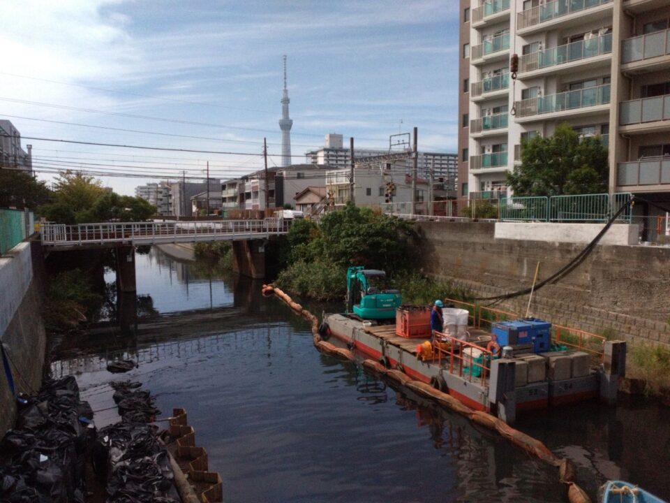 施工方法01『大型泥上掘削機と組立式土運搬船』